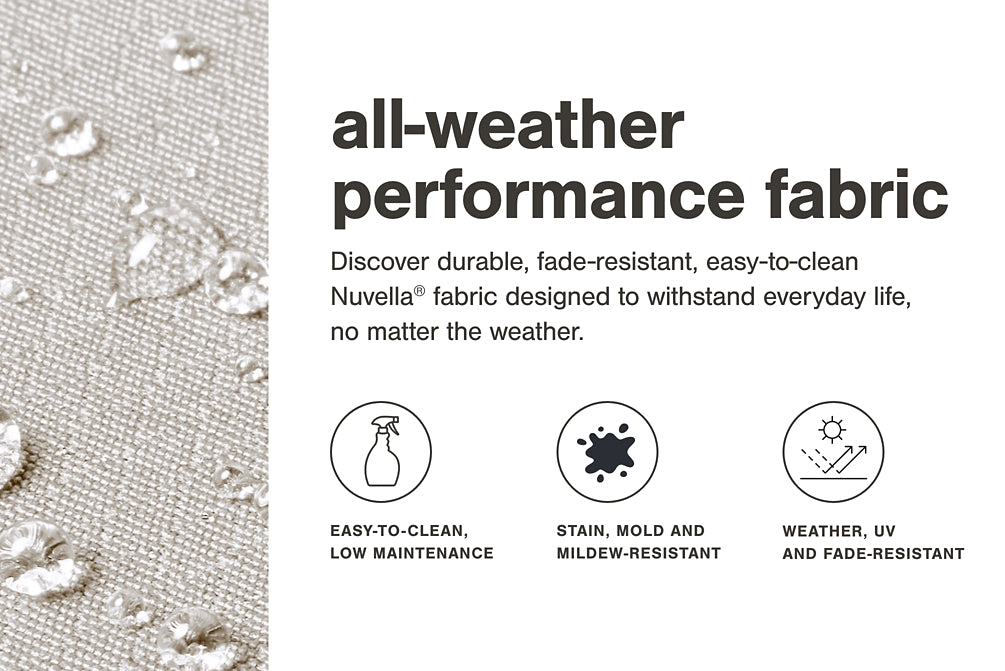 | Details | Includes 8 modular outdoor lounge chairs, Aluminum frame, Solution-dyed high-performance fabric, Nuvella® is an outdoor fabric that can be cleaned and offers UV resistance, Stainless steel hardware, Designed to withstand the harsh elements of the outdoors, Cushioned seat, Back cushion included, Includes PVC protective weather cover, Clean fabric with mild soap and water, let air dry; for stubborn stains, use a solution of 1 cup bleach to 1 gallon water | |